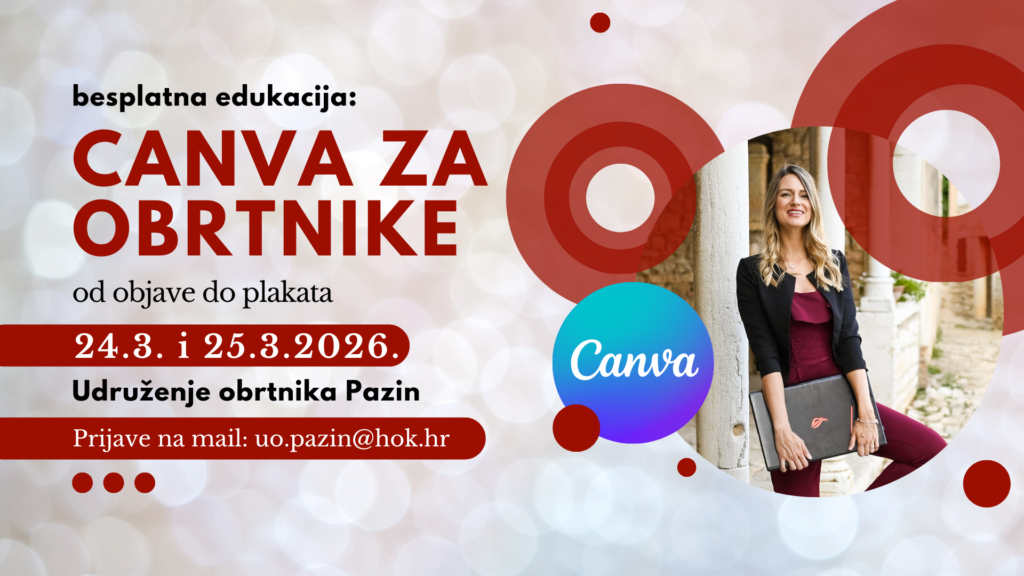 U organizaciji Udruženja obrtnika Pazin, 24. i 25. ožujka 2026. održana je besplatna edukacija namijenjena obrtnicima koji žele unaprijediti svoje vještine u izradi vizualnih i marketinških materijala. Radionica se održala u prostoru Udruženja, a okupila je brojne sudionike zainteresirane za jačanje vlastitog brenda i kvalitetniju prezentaciju svojih proizvoda i usluga.